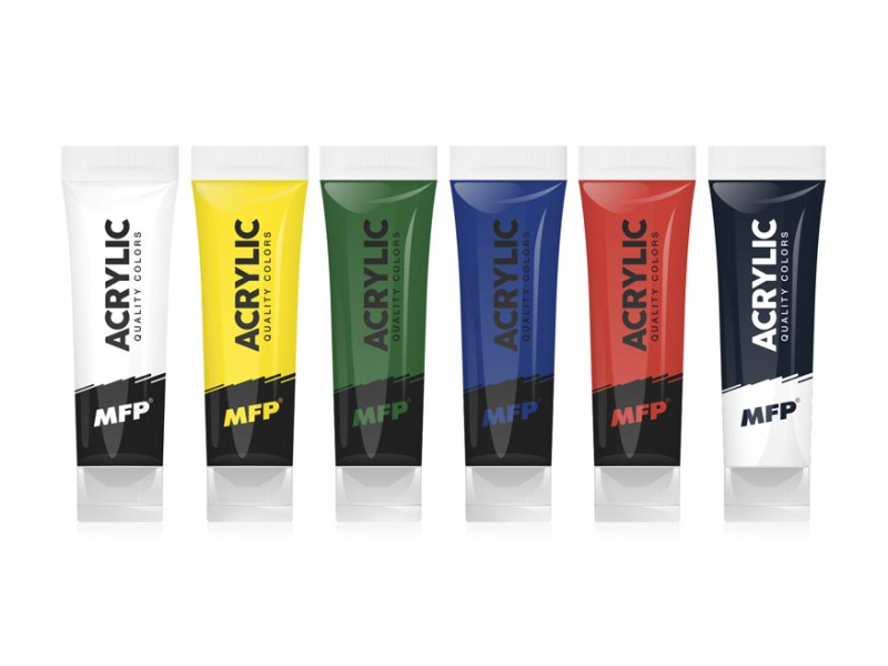 Akrylové farby sú vodou riediteľné a po zaschnutí vode odolné. Vyznačujú sa svojou farebnou sýtosťou i stálosťou, jemnou a hladkou konzistenciou a veľmi dobrými krycími schopnosťami. Sú vhodné na všetky nemastné a hladké povrchy, ako sú plátna, papier, drevo, kameň a pod. Veľkým hitom pre deti i dospelých je maľovanie na kamienky. Tejto zábave už podľahli celé rodiny a práve pre ne sú tieto farby určené. Po zaschnutí odporúčame farbu ešte zafixovať akrilovým lakom, ktorý kresbu dokonale ochráni. Súprava obsahuje 6 farieb. Farby v balení: čierna, červená, modrá, zelená, žltá, biela v plastových tubách. Obsah farby v tube: 75 ml.