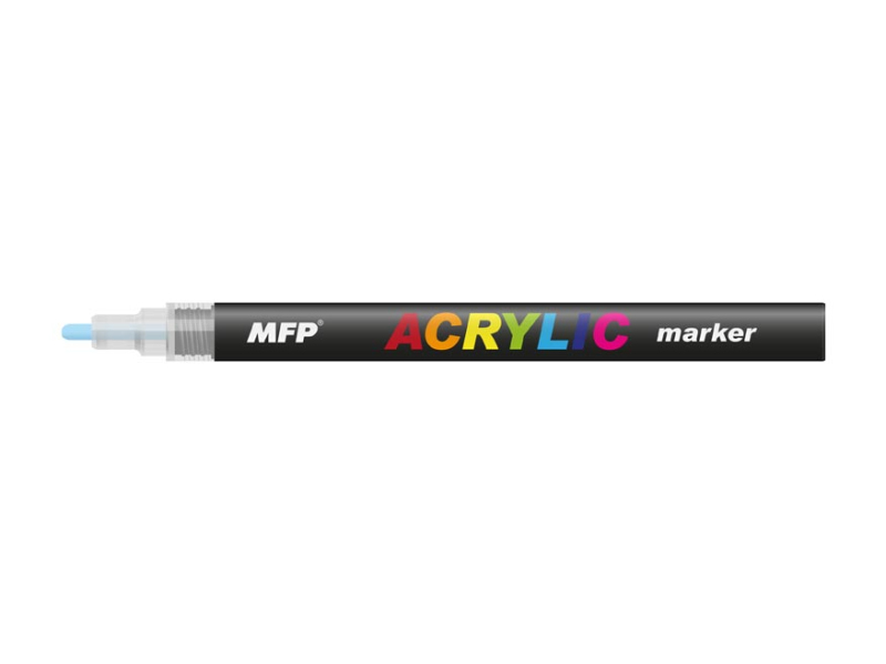 Akrylový svetlomodrý popisovač. Tieto akrylové popisovače sa vyznačujú svojou farebnou sýtosťou a stálosťou, veľmi dobrými krycími schopnosťami. Sú vhodné na všetky nemastné a hladké povrchy ako sú plátna, papier, drevo, kameň a iné. NÁVOD NA POUŽITIE: Pred použitím potraste. Stlačte hrot dole, kým nevytečie farba. Nepritláčajte hrot pri písaní. Skladujte hrotom hore. Hrot: 4 mm Dĺžka: 150 mm Priemer: 15 mm Uvedená cena je za 1 ks.