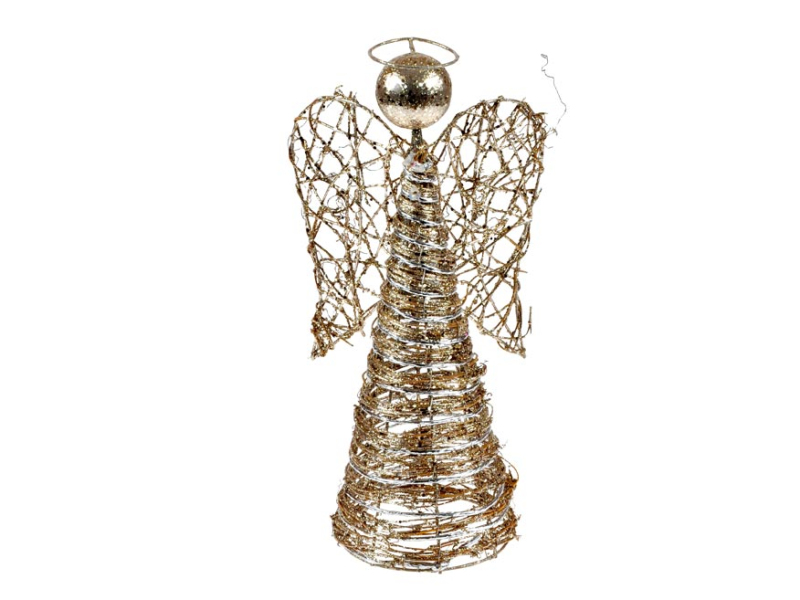 Vianočná zlatá dekorácia z ratanu v tvare anjela. Môžete s ním ozdobiť okná alebo vchodové dvere. Vianočná výzdoba, ktorá skrášli ako interiér, tak exteriér. Tento stromček môžete, ale aj ďalej dekorovať podľa vašej fantázie. Veľkosť: 300 mm Uvedená cena je za 1 ks.