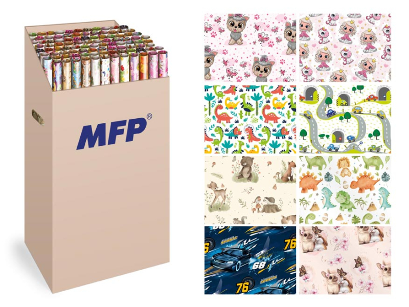 Baliaci papier rolky s 9 detskými motívmi. Pri darčekoch je veľmi dôležitý obsah, ale i to, aby bol krásne zabalený. Balenie obsahuje 2 hárky 1000 x 700 mm. Balenie: 96 ks Gramáž : 80 g Vzor: rôzne vzory Veľkosť rolky : 2 ks - 2000 x 700 mm Všetkých 96 ks je balených v kartónovej škatuli. Dodávame v mixe podľa skladových zásob. Uvedená cena je za 1 ks.