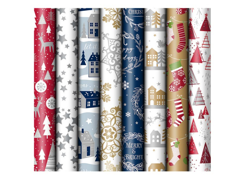 Rolka vianočného baliaceho papiera, 8 rôznych vzorov. Obsah darčeka je veľmi dôležitý, ale aj to, aby bol krásne zabalený. Získajte od nás darčekový baliaci papier s vianočným motívom. Nezabudnite si kúpiť peknú stuhu a menovky na darček. Balenie: 55 ks Hmotnosť: 55 g Rozmer rolky: 500 x 70 cm Vzor: rôzne vianočné vzory Všetkých 55 kusov je zabalených v kartónovej krabici. Dodávame v mixe podľa skladových zásob. Uvedená cena je za 1 ks.