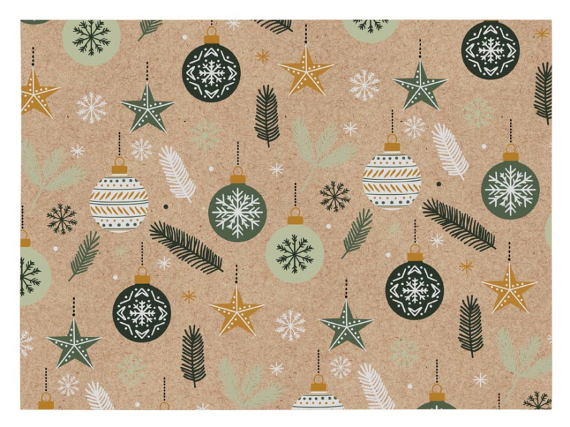 Vianočný baliaci papier KRAFT s motívom vianočných ozdôb a vetvičiek. Vysokokvalitný kraftový papier, ktorý je pevný a odolný, ideálny na balenie darčekov všetkých tvarov a veľkostí. Urobte radosť svojim blízkym nielen obsahom, ale aj krásnym vzhľadom darčeka. U nás nájdete všetko, čo potrebujete na dokonalé zabalenie darčeka, od baliaceho papiera až po stuhy a menovky. Balenie: 25 ks Hmotnosť: 60 g Rozmer archu: 1000 x 700 mm Motív: vianočné ozdoby, vetvičky Všetkých 25 ks je zabalených v sáčku. Uvedená cena je za 1 ks.