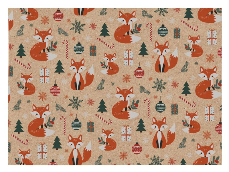Vianočný baliaci papier KRAFT s motívom s líškami a vianočnými ozdobami. Vysokokvalitný kraftový papier, ktorý je pevný a odolný, ideálny na balenie darčekov všetkých tvarov a veľkostí. Urobte radosť svojim blízkym nielen obsahom, ale aj krásnym vzhľadom darčeka. U nás nájdete všetko, čo potrebujete na dokonalé zabalenie darčekov, od baliaceho papiera až po stuhy a menovky. Balenie: 25 ks Hmotnosť: 60 g Rozmer archu: 1000 x 700 mm Motív: líšky, vianočné ozdoby Všetkých 25 ks je zabalených v sáčku. Uvedená cena je za 1 ks.