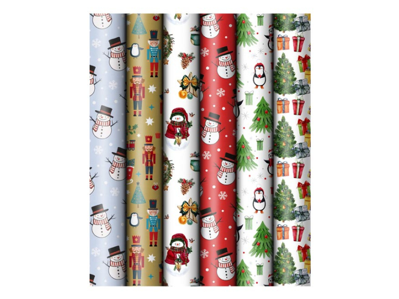 Vianočný baliaci papier v mixe 8 motívov. Veľmi dôležitý je obsah darčeka, ale aj to, aby bol krásne zabalený. Získajte od nás darčekový baliaci papier s vianočným motívom. Nezabudnite si kúpiť peknú stuhu a menovky na darček. Hmotnosť: 80 g Balenie: 50 ks Vzor: rôzne vianočné vzory Rozmer rolky: 2000 x 700 mm Všetkých 50 kusov je zabalených v kartónovej krabici. Dodávame v mixe podľa skladových zásob. Uvedená cena je za 1 ks.