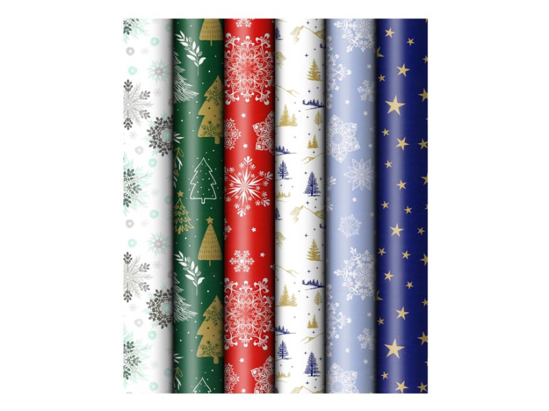 Vianočný baliaci papier v mixe 8 motívov. Veľmi dôležitý je obsah darčeka, ale aj to, aby bol krásne zabalený. Získajte od nás darčekový baliaci papier s vianočným motívom. Nezabudnite si kúpiť peknú stuhu a menovky na darček. Hmotnosť: 80 g Balenie: 50 ks Vzor: rôzne vianočné vzory Rozmer rolky: 10000 x 700 mm Všetkých 50 kusov je zabalených v kartónovej krabici. Dodávame v mixe podľa skladových zásob. Uvedená cena je za 1 ks.