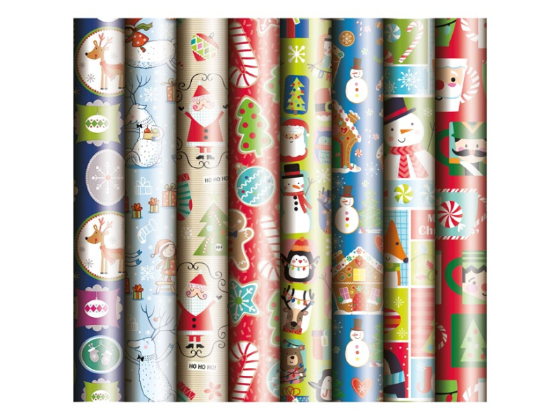 Baliaci papier, vianočná rolka, 8 rôznych detských vzorov. Obsah darčeka je veľmi dôležitý, ale aj to, aby bol krásne zabalený. Získajte od nás darčekový baliaci papier s vianočným motívom. Nezabudnite si kúpiť peknú stuhu a menovky na darček. Gramáž: 55 g Balenie: 60 ks Vzor: rôzne vianočné vzory Rozmer rolky: 2000 x 700 mm Všetkých 60 ks je zabalených v kartónovej krabici. Dodávame v mixe podľa skladových zásob. Cena je uvedená za 1 ks.