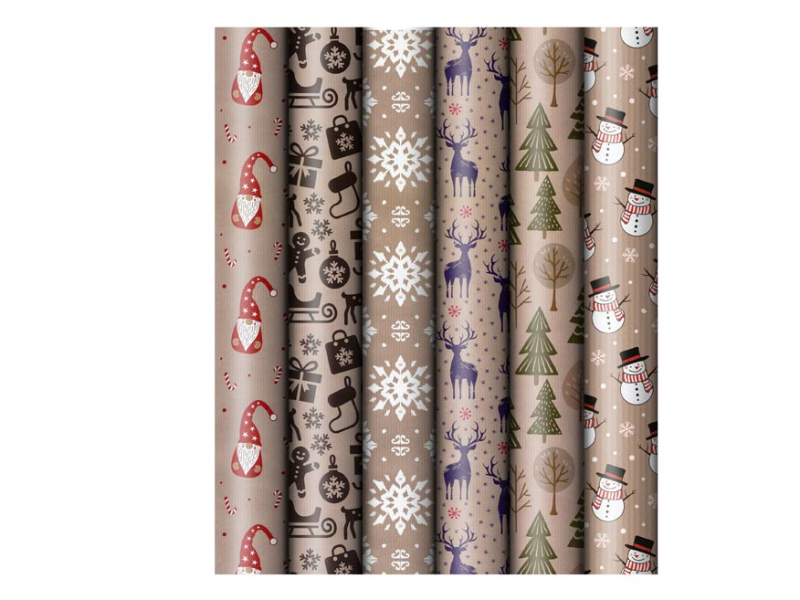 Vianočný baliaci papier kraft v kombinácii 5 motívov. Obsah vianočných darčekov je veľmi dôležitý, ale aj to, ako je darček zabalený. Získajte vianočný baliaci papier na darčeky s rôznymi motívmi. Nezabudnite kúpiť peknú stuhu a menovky na darček. Hmotnosť: 70 g Balenie: 60 ks Motív: mix vianočných motívov Materiál: kraftový papier Rozmer rolky: 2000 x 700 mm Všetkých 60 kusov je zabalených v kartónovej krabici. Dodávame v mixe podľa skladových zásob. Uvedená cena je za 1 ks.
