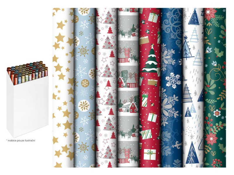 Vianočný baliaci papier v rolke v kombinácii 8 motívov. Pripravte sa na Vianoce a potešte svojich blízkych nielen obsahom, ale aj krásnym vzhľadom svojich darčekov. Nezabudnite, že krásne zabalený darček prináša ešte väčšiu radosť. Nájdete tu všetko, čo potrebujete na dokonalé zabalenie darčekov, od baliaceho papiera až po stuhy a menovky. Balenie: 60 ks Hmotnosť: 55 g Motív: zmes vianočných motívov Rozmer rolky: 5000 x 700 mm Všetkých 60 ks je zabalených v kartónovej krabici. Dodávame v mixe podľa skladových zásob. Uvedená cena je za 1 ks.