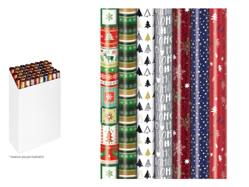 Vianočný baliaci papier rolky - 7 rôznych vzorov. Obsah darčeka je veľmi dôležitý, ale aj to, aby bol krásne zabalený. Získajte od nás darčekový baliaci papier s vianočným motívom. Nezabudnite si kúpiť peknú stuhu a menovky na darček. Gramáž: 60 g Balenie: 50 ks Vzor: rôzne vianočné vzory Rozmer rolky: 5000 x 700 mm Všetkých 50 ks je zabalených v kartónovej krabici. Dodávame v mixe podľa skladových zásob. Cena je uvedená za 1 ks.