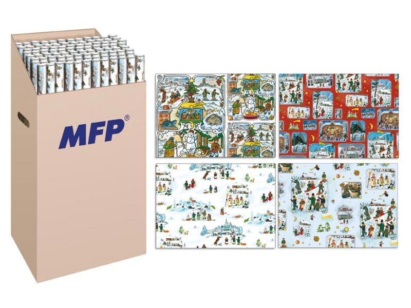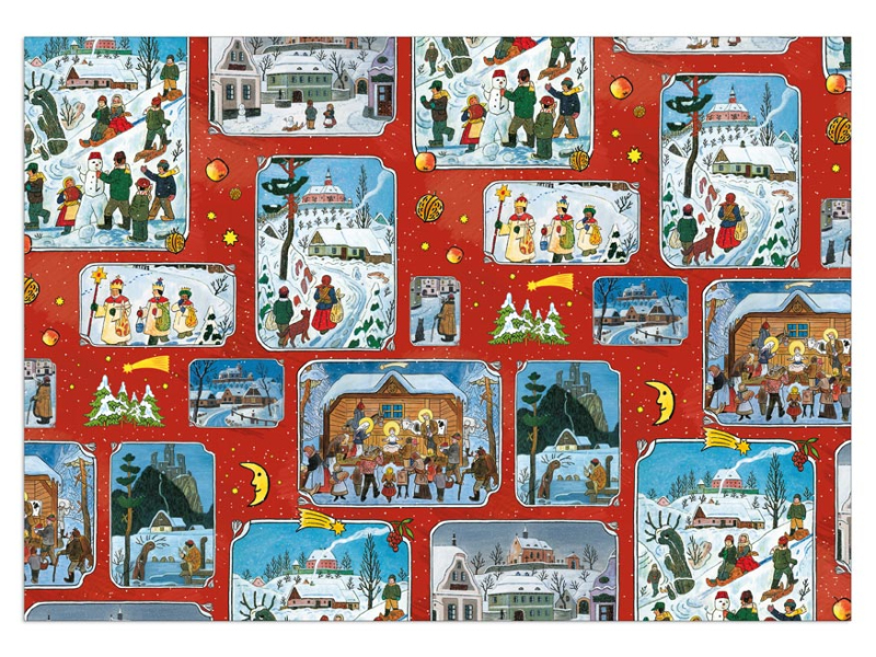 Vianočný baliaci papier rolky s motívmi od Jozefa Ladu - 4 rôzne vzory. Pri darčekoch je veľmi dôležitý obsah, ale aj to, ako je darček zabalený. Zaobstarajte si u nás darčekový baliaci papier s detským motívom Jozefa Ladu. Vybrať si môžete z rôznych vzorov. Nezabudnite si kúpiť aj pekné stužky a menovky na darčeky. Balení: 96 ks Gramáž: 70 g Vzor: 4 rôzne vzory Veľkosť rolky: 2 ks - 1000 x 700 mm Všetkých 96 ks je balených v kartónovej krabici. Dodávame v mixe podľa skladovej zásoby. Uvedená cena je za 1 ks.