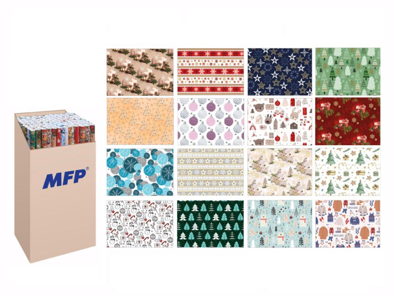 Baliaci papier - vianočné role - 16 rôznych vzorov. Pri vianočných darčekoch je veľmi dôležitý obsah, ale aj to, ako je darček zabalený. Zaobstarajte si u náš vianočný darčekový baliaci papier s vianočným motívom. Nezabudnite na peknú stužku a menovky na darčeky. Balení: 96 ks Gramáž: 80 g Vzor: rôzne vianočné vzory Veľkosť rolky: 2 ks - 1000 x 700 mm Všetkých 96 ks je balených v kartónovej krabici. Dodávame v mixe podľa skladovej zásoby. Uvedená cena je za 1 ks.
