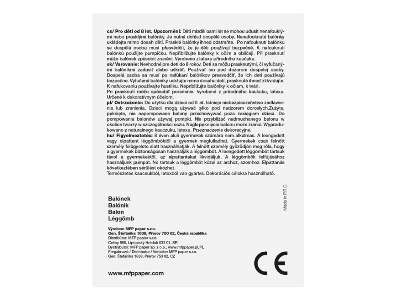 Nafukovací balónik M metal 1,8 g - 23 cm, mix. Balóniky sú obľúbeným dekoračným doplnkom na narodeninovej oslave či inej významnej udalosti. Nafukovacie balóniky nesmú chýbať na žiadnej oslave, dodajú tú pravú atmosféru do celej miestnosti a narodeninová párty môže začať! VAROVANIE: Nevhodné pre deti do 8 rokov. Deti sa môžu prasknutými, či vyfučanými balónikmi zadusiť alebo uškrtiť. Používať len pod dozorom dospelej osoby. Dospelá osoba sa musí po nafúkaní balónikov presvedčiť, že ich deti používajú bezpečne. Vyfučané balóniky udržujte mimo dosahu detí, prasknuté ihneď zlikvidujte. K nafukovaniu používajte hustilku. Nepribližujte balóniky k očiam, k tvári. Pri prasknutí môžu spôsobiť poranenie. Vyrobené z prírodného kaučuku, latexu. Určené k dekoratívnym účelom. Dodávame v sáčku iba po 100 ks. Uvedená cena je za 1 ks.