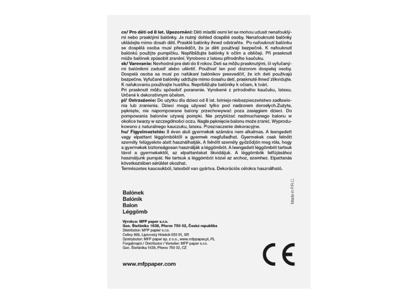 Nafukovací balónik M štandard 2,8 g - 30 cm, mix. Balóniky sú obľúbeným dekoračným doplnkom na narodeninovej oslave či inej významnej udalosti. Nafukovacie balóniky nesmú chýbať na žiadnej oslave, dodajú tú pravú atmosféru do celej miestnosti a narodeninová párty môže začať! VAROVANIE: Nevhodné pre deti do 8 rokov. Deti sa môžu prasknutými, či vyfučanými balónikmi zadusiť alebo uškrtiť. Používať len pod dozorom dospelej osoby. Dospelá osoba sa musí po nafúkaní balónikov presvedčiť, že ich deti používajú bezpečne. Vyfučané balóniky udržujte mimo dosahu detí, prasknuté ihneď zlikvidujte. K nafukovaniu používajte hustilku. Nepribližujte balóniky k očiam, k tvári. Pri prasknutí môžu spôsobiť poranenie. Vyrobené z prírodného kaučuku, latexu. Určené k dekoratívnym účelom. Dodávame v sáčku iba po 100 ks. Uvedená cena je za 1 ks.