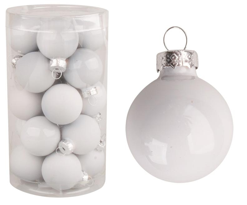 Sada skleněných baněk bílých 3 cm, 20 ks