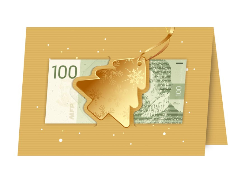 Originálne zlaté vianočné želanie s výsekom, do ktorého môžete zasunúť peniaze. Toto želanie je bez textu, teda tam môžete napísať svoje vlastné motto. Papier: pohľadnicový kartón 240 g Želanie je balené vo vrecku, súčasťou balenia je listová obálka.
