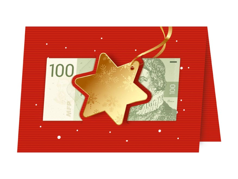 Originálne červené vianočné želanie s výsekom, do ktorého môžete zasunúť peniaze. Toto želanie je bez textu, teda tam môžete napísať svoje vlastné motto. Papier: pohľadnicový kartón 240 g Želanie je balené vo vrecku, súčasťou balenia je listová obálka.