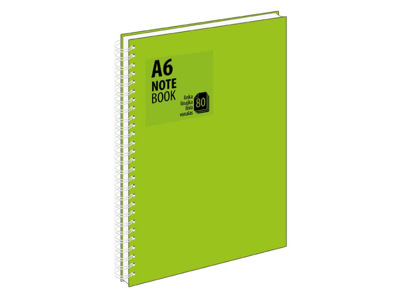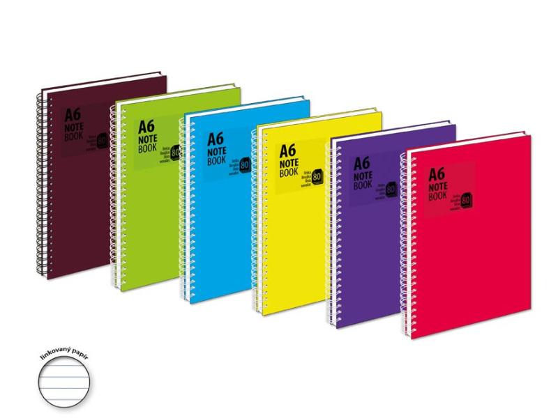 Linajkový poznámkový blok A6 so špirálou. Dosky bloku sú vyrobené z PVC. Formát: A6 Počet listov: 80 Gramáž: 70g Barva: hnedá , zelená, modrá, žltá, fialová, rúžová. Dodávame v mixe po 6 ks podľa skladovej zásoby. Uvedená cena je za 1 ks.