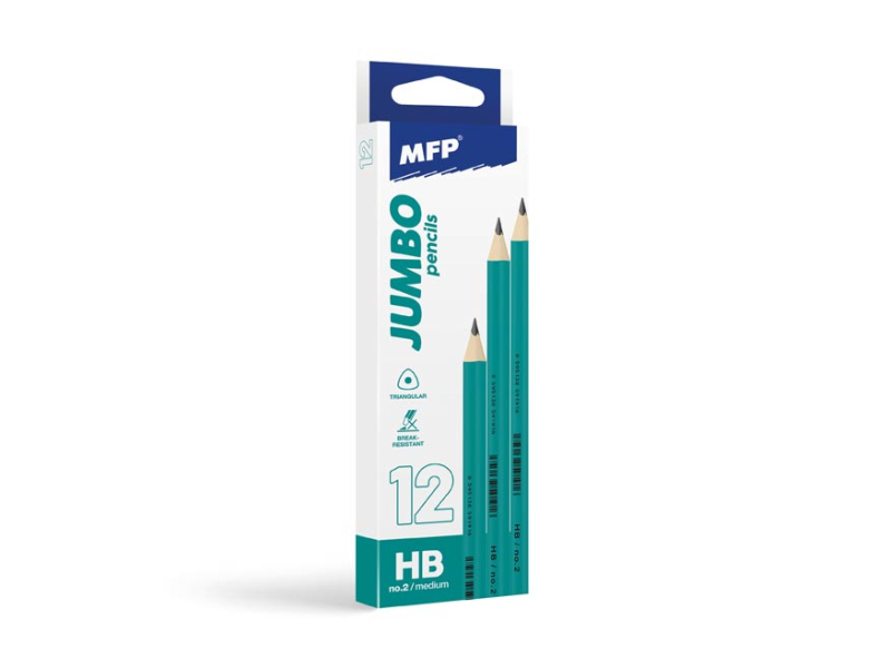 Trojhranná, grafitová ceruzka Jumbo JG001T tvrdosť č.2 (HB). Ceruzky majú veľmi dobré držanie vďaka ergonomickému trojhrannému dizajnu. Väčší priemer ceruzky zaručuje pohodlné uchopenie aj menším deťom. Na výrobu bolo použité vysoko kvalitné drevo, preto sa dajú bez problémov strúhať. Tuhy v týchto ceruzkách sú pevne spojené s drevom, aby sa nelámali. Dĺžka ceruzky: 175 mm Priemer tuhy: 4 mm Šírka ceruzky: 10 mm Balené v papierovej škatuľke so závesom po 12 ks. Uvedená cena je za 1 ks.