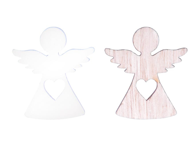 Drevený dekoračný anjel v bielej a prírodnej farbe. Plánujete stráviť príjemné popoludnie a vyzdobiť si dom alebo záhradu? Tieto drevené dekorácie sú tým pravým kreatívnym doplnkom, ktorý ozdobí každý kút vašej izby! OBSAH BALENIA: - 12 ks anjelikov (biela, prírodná) Veľkosť: 30 mm Dodávame vo vrecku so závesom. Uvedená cena je za 1 balenie.