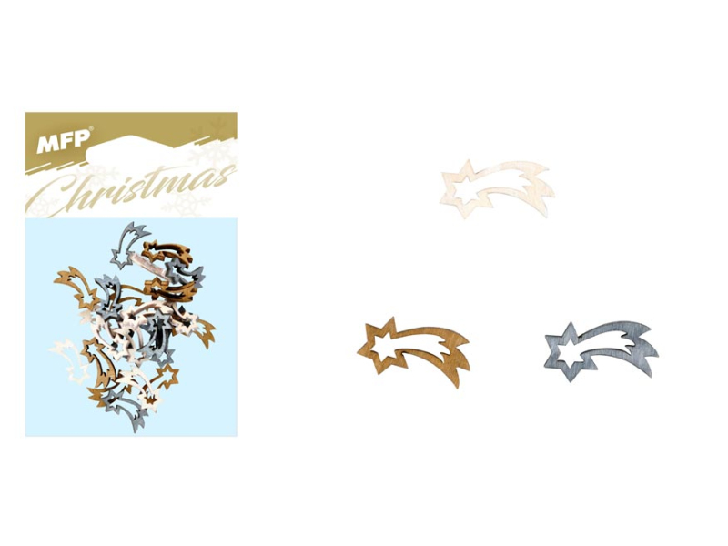 Vianočná dekorácia - drevená kométa - v mixe 3 farieb (biela, hnedá, šedá) - Plánujete si vyrobiť vianočné prianie, adventný veniec alebo si len urobiť kreatívne pohodové popoludnie pred Vianocami a vyzdobiť si byt? Určite neváhajte kúpiť tieto krásne drevené dekorácie, ktoré navodia príjemnú vianočnú atmosféru. Vyrobené z preglejky. Súprava obsahuje: - 24 kusov vianočných ozdôb Balené v sáčku so závesom. Uvedená cena je za 1 balenie.