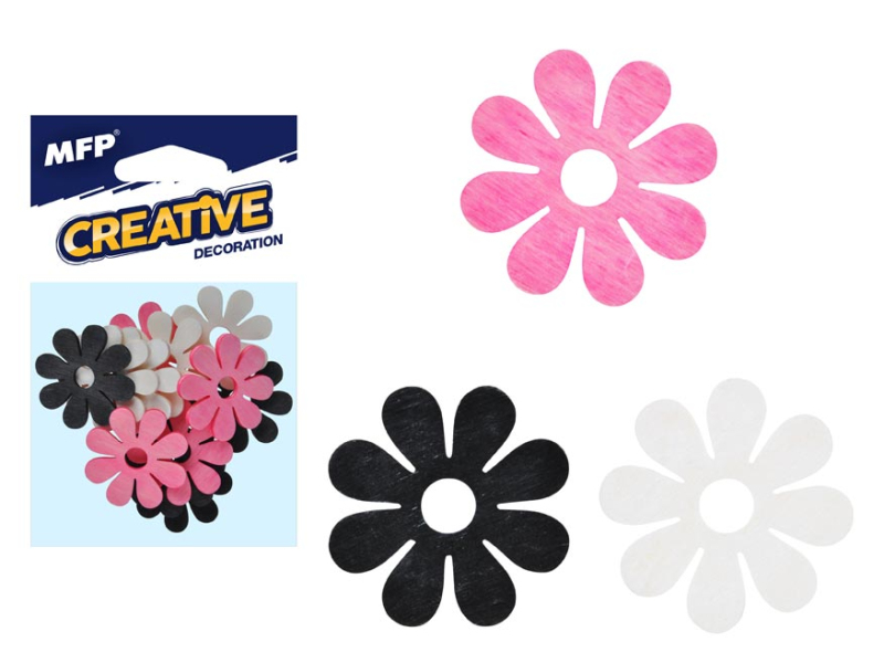 Drevená dekorácia - kvetiny – Plánujete si urobiť pohodové jarné odpoludnie a vyzdobiť si dom alebo záhradu? Tieto drevené dekorácie sú tým vhodným kreatívnym doplnkom, ktorý ozdobí každý kút vašej miestnosti. Vyrobené z preglejky. Dekoráciu je možné použiť na aranžovanie vencov a rôznych doplnkov do interiéru. Súprava obsahuje: -12 ks kvetín (ružové, biele, čierne) Uvedená cena je za balenie. Balené vo vrecku so závesom.