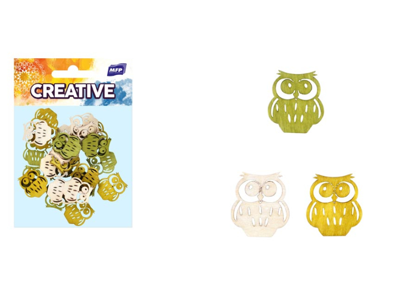 Jesenná drevená dekorácia sova. Plánujete si urobiť pohodové jesenné popoludnie a vyzdobiť si dom alebo záhradu? Tieto drevené dekorácie sú tým vhodným kreatívnym doplnkom, ktorý ozdobí každý kút Vašej miestnosti! Dekoráciu je možné použiť na aranžovanie vencov a rôznych doplnkov do interiéru. Vyrobené z preglejky. Súprava obsahuje: - 24 ks vyrezávaných sovičiek (zelená, biela, žltá) Balené v sáčku so závesom. Uvedená cena je za 1 balenie.