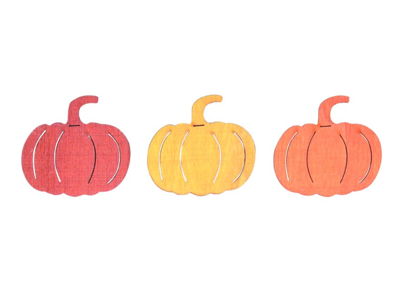Jesenná drevená dekorácia z tekvíc. Plánujete si spríjemniť jesenné popoludnie a vyzdobiť si dom alebo záhradu? Tieto drevené dekorácie sú tým pravým kreatívnym doplnkom, ktorý ozdobí každý kút vašej miestnosti! Vyrobené z preglejky. OBSAH BALENIA: - 12 kusov vyrezávaných farebných tekvíc (červená, žltá, oranžová) Veľkosť: 40 mm Dodávame vo vrecku so závesom. Uvedená cena je za 1 balenie.