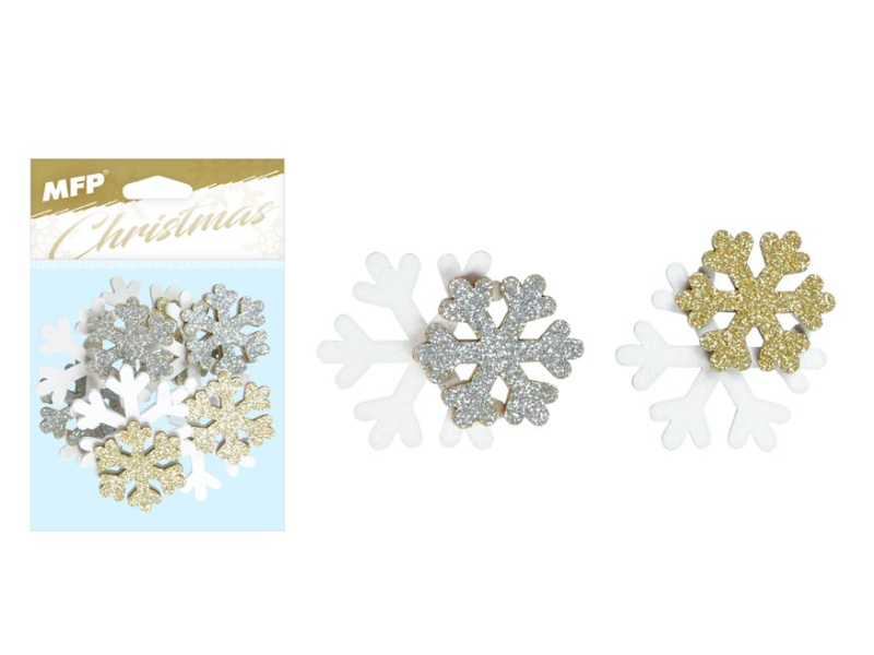 Dekorácia vločky. Krásna, vianočná dekorácia v dizajne trblietavých vločiek, poslúži ako dekorácia do interiéru, môžete tým ozdobiť stôl, veniec a všetko čo vás napadne. Táto krásna vianočná dekorácia tak naladí vianočnú atmosféru. Balenie obsahuje: - 6 ks dekorácií (mix vločiek) Veľkosť: 4,5 cm Uvedená cena je za 1 balenie.