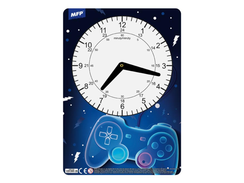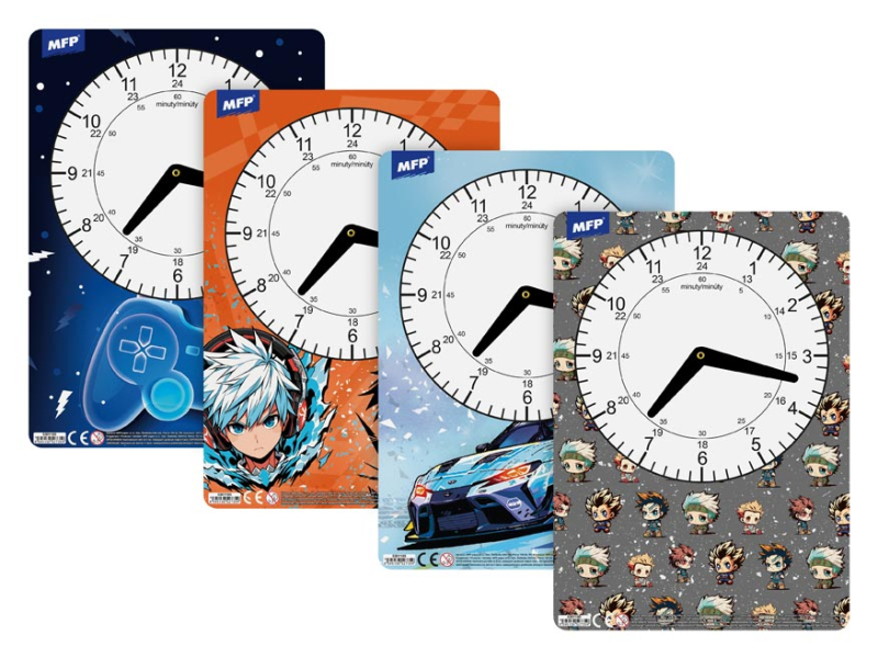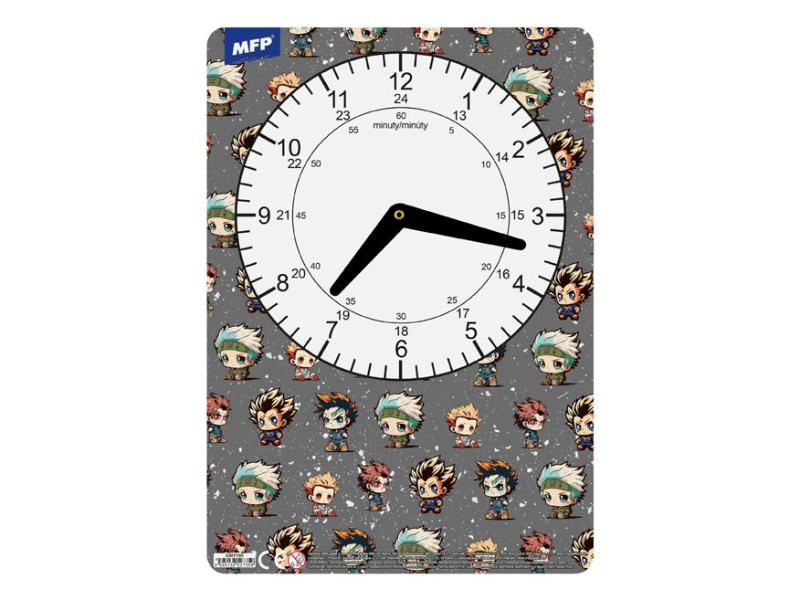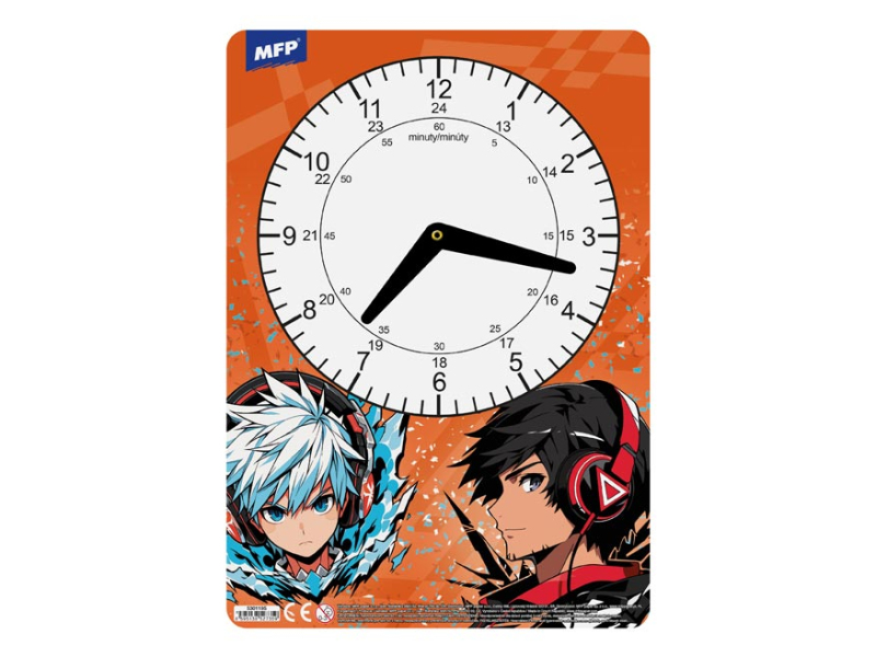 Detské papierové hodiny v mixe chlapčenských motívov. Didaktická pomôcka, dobre využiteľná na výučbu času u detí predškolského veku alebo u prváčikov. Tieto cvičné hodiny nesmú chýbať Vášmu dieťaťu pri nástupe do prvej triedy základnej školy. Motív: herné, animey style, závodné auto, anime maskoti Upozornenie: Nevhodné pre deti do 3 rokov. Nebezpečenstvo vdýchnutia a prehltnutia malých častíc. Dodávame v mixe 4 ks podľa skladovej zásoby. Uvedená cena je za 1 ks.