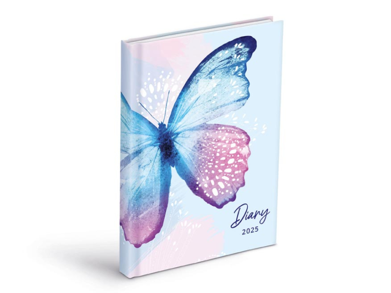 Denný diár na rok 2025 vo formáte A5 s nádherným motívom motýľa. Povrch obálky je vyrobený z lesklého lamina, čo dodáva diáru elegantný vzhľad a zvyšuje jeho odolnosť. Je ideálnym pomocníkom na organizovanie Vášho času, vďaka čomu budete mať svoje denné plány vždy pod kontrolou. DIÁR OBSAHUJE: - priestor pre osobné údaje - ročný prehľad roka - plánovací kalendár - štvrťročný plánovací kalendár - abecedný zoznam mien - štátne sviatky - medzinárodné sviatky - mapy - menné kalendárium - číslovanie týždňov - štátne sviatky a významné dni - východy a západy Slnka - fáza mesiaca - letný a zimný čas - znamenie - prehľad mesiaca - priestor pre poznámky a denné ciele motív: motýľ Väzba: šitá V8 Rozsah: 336 strán Rozmer: 140 x 205 mm Kalendárium: československé denné Povrchy a spracovanie obálky: lesklé lamino Uvedená cena je za 1 ks.