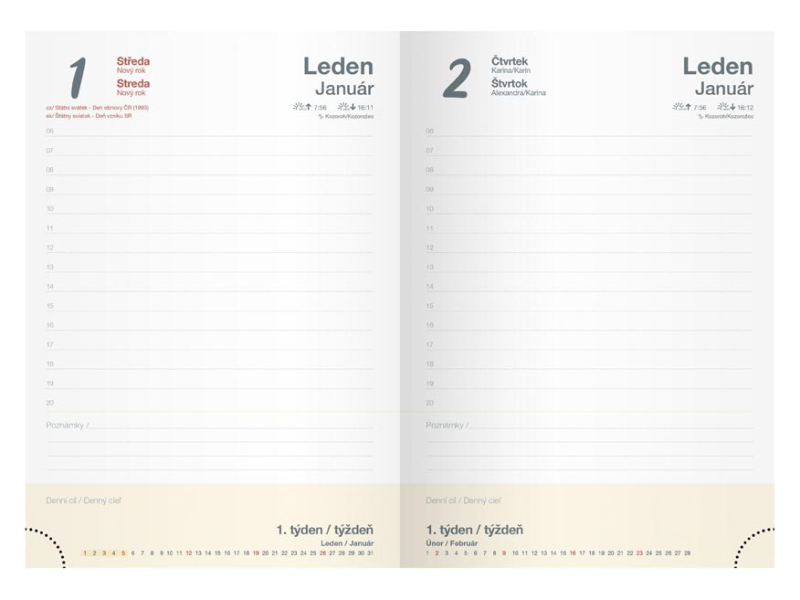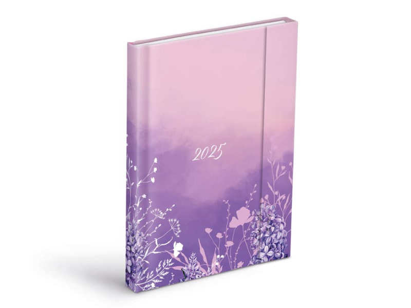 Denný diár pre rok 2025 vo formáte A5, v odtieňoch fialovej farby, s kvetinovým motívom. Je výborným pomocníkom na organizovanie vášho času. Povrch obálky je vyrobený z lesklého lamina, čo dodáva diáru elegantný vzhľad a zvyšuje jeho odolnosť. Uzatváranie je na magnet. DIÁR OBSAHUJE: - priestor pre osobné údaje - ročný prehľad roka - plánovací kalendár - štvrťročný plánovací kalendár - abecedný zoznam mien - štátne sviatky - medzinárodné sviatky - mapy - menné kalendárium - číslovanie týždňov - štátne sviatky a významné dni - východy a západy Slnka - fáza mesiaca - letný a zimný čas - znamenie - prehľad mesiaca - priestor pre poznámky a denné ciele Motív: kvety Väzba: šitá V8 Rozsah: 336 strán Farba: odtiene fialovej Rozmer: 140 x 205 mm Kalendárium: československé denné Povrchy a spracovanie obálky: lesklé lamino Uvedená cena je za 1 ks.