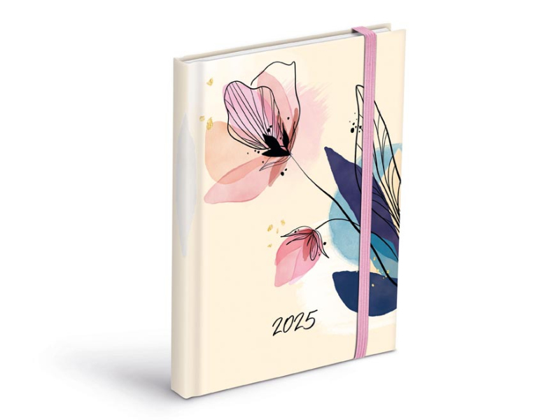 Denný diár pre rok 2025 vo formáte A5 s kvetinovým motívom a uzatváraním na gumičku. Povrch obálky je vyrobený z lesklého lamina, čo dodáva diáru elegantný vzhľad a zvyšuje jeho odolnosť. Tento diár je výborným pomocníkom na organizovanie vášho času, takže budete mať svoje denné plány vždy prehľadne usporiadané. DIÁR OBSAHUJE: - priestor pre osobné údaje - ročný prehľad roka - plánovací kalendár - štvrťročný plánovací kalendár - abecedný zoznam mien - štátne sviatky - medzinárodné sviatky - mapy - menné kalendárium - číslovanie týždňov - štátne sviatky a významné dni - východy a západy Slnka - fáza mesiaca - letný a zimný čas - znamenie - prehľad mesiaca - priestor pre poznámky a denné ciele Väzba: šitá V8 Motív: kvetina Rozsah: 336 strán Rozmer: 140 x 205 mm Kalendárium: československé denné Povrchy a spracovanie obálky: lesklé lamino Uvedená cena je za 1 ks.