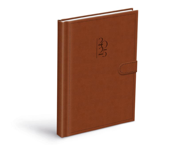 Denný diár pre rok 2025 vo formáte A5, vo farbe koňaku s uzatváraním na magnet. Povrch obálky je vyrobený z mäkčeného materiálu príjemného na dotyk. Je výborným pomocníkom na organizovanie Vášho času. DIÁR OBSAHUJE: - priestor pre osobné údaje - ročný prehľad roka - plánovací kalendár - štvrťročný plánovací kalendár - abecedný zoznam mien - štátne sviatky - medzinárodné sviatky - mapy - menné kalendárium - číslovanie týždňov - štátne sviatky a významné dni - východy a západy Slnka - fáza mesiaca - letný a zimný čas - znamenie - prehľad mesiaca - priestor pre poznámky a denné ciele Farba: hnedá Väzba: šitá V8 Rozsah: 336 strán Rozmer: 140 x 205 mm Povrchy a spracovanie obálky: PU Kalendárium: československé denné Uvedená cena je za 1 ks.