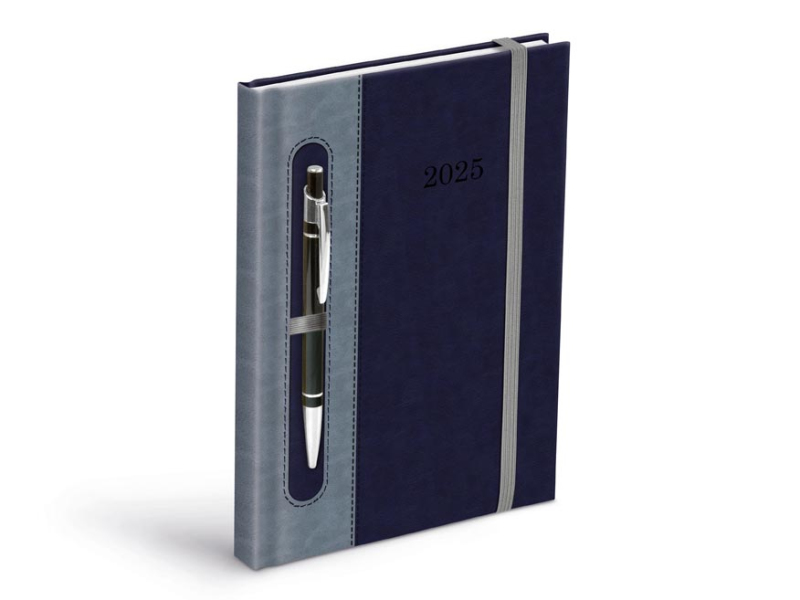 Denný diár pre rok 2025 vo formáte A5, v kombinácii tmavo modrej a šedej farby, s pútkom na pero a uzatváraním na gumičku. Povrch obálky je vyrobený z mäkčeného materiálu príjemného na dotyk. Je výborným pomocníkom na organizovanie Vášho času. Diár dodávame bez pera. DIÁR OBSAHUJE: - priestor pre osobné údaje - ročný prehľad roka - plánovací kalendár - štvrťročný plánovací kalendár - abecedný zoznam mien - štátne sviatky - medzinárodné sviatky - mapy - menné kalendárium - číslovanie týždňov - štátne sviatky a významné dni - východy a západy Slnka - fáza mesiaca - letný a zimný čas - znamenie - prehľad mesiaca - priestor pre poznámky a denné ciele Väzba: šitá V8 Rozsah: 336 strán Rozmer: 140 x 205 mm Farba: tmavo modrá, šedá Povrchy a spracovanie obálky: PU Kalendárium: československé denné Uvedená cena je za 1 ks.