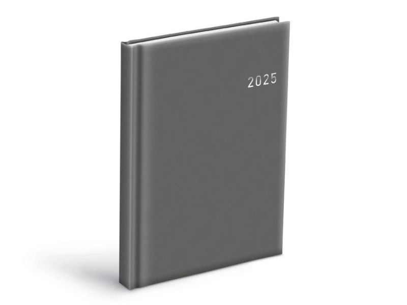 Denný diár pre rok 2025 vo formáte A5 v tmavo šedej farbe. Obálka je vyrobená z odolného PVC, čo zaručuje dlhú životnosť a odolnosť voči každodennému opotrebovaniu. Diár má odtrhávateľný spodný rožok, ktorý umožní rýchle nalistovanie aktuálneho dňa. Tento diár je ideálnym pomocníkom na efektívne plánovanie vášho času. DIÁR OBSAHUJE: - ročný prehľad roka - plánovací kalendár - štvrťročný plánovací kalendár - abecedný zoznam mien - štátne sviatky - medzinárodné sviatky - 7 strán pre poznámky - mapy - menné kalendárium - číslovanie týždňov - štátne sviatky a významné dni - východy a západy Slnka - fáza mesiaca - letný a zimný čas - znamenie - prehľad dvoch mesiacov Väzba: šitá V8 Rozsah: 336 strán Farba: tmavo šedá Rozmer: 140 x 205 mm Povrchy a spracovanie obálky: PVC Kalendárium: československé denné Uvedená cena je za 1 ks.