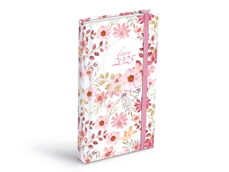 Denný diár na rok 2025 s motívom kvetov a uzatváraním na gumičku. Povrch obálky je vyrobený z lesklého lamina. Diár má odtrhávateľný spodný rožok, ktorý umožní rýchle nalistovanie aktuálneho dňa. Je výborným pomocníkom pri organizovaní Vášho času. Výhodou je aj praktický, skladný rozmer, pri zachovaní dostatku miesta na poznámky. DIÁR OBSAHUJE: - priestor pre osobné údaje: - ročný prehľad roka - plánovací kalendár - štvrťročný plánovací kalendár - abecedný zoznam mien - štátne sviatky - medzinárodné sviatky - 7 strán pre poznámky - mapy - menné kalendárium - číslovanie týždňov - štátne sviatky a významné dni - východy a západy Slnka - fáza mesiaca - letný a zimný čas - znamenie - prehľad dvoch mesiacov Väzba: šitá V8 Motív: kvety Rozsah: 336 strán Rozmer: 90 x 170 mm Kalendárium: československé denné Povrchy a spracovanie obálky: lesklé lamino Uvedená cena je za 1 ks.