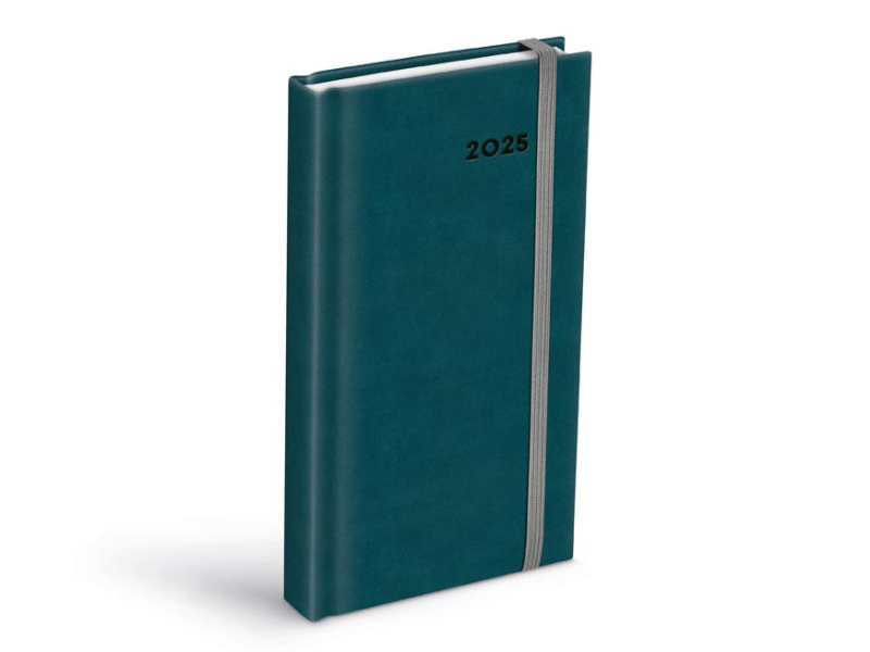 Denný diár na rok 2025 v elegantnej petrolejovej farbe s praktickým uzatváraním na gumičku. Povrch obálky je vyrobený z mäkčeného materiálu, ktorý je nielen odolný, ale aj príjemný na dotyk. Diár má odtrhávateľný spodný rožok, ktorý umožní rýchle nalistovanie aktuálneho dňa. Disponuje praktickým a skladným rozmerom, a napriek tomu ponúka dostatok miesta na všetky vaše poznámky. Tento diár je ideálnym pomocníkom pre efektívne plánovanie vášho času, či už ste v kancelárii, doma alebo na cestách. DIÁR OBSAHUJE: - priestor pre osobné údaje: - ročný prehľad roka - plánovací kalendár - štvrťročný plánovací kalendár - abecedný zoznam mien - štátne sviatky - medzinárodné sviatky - 7 strán pre poznámky - mapy - menné kalendárium - číslovanie týždňov - štátne sviatky a významné dni - východy a západy Slnka - fáza mesiaca - letný a zimný čas - znamenie - prehľad dvoch mesiacov Väzba: šitá V8 Rozsah: 336 strán Farba: petrolejová Rozmer: 90 x 170 mm Povrchy a spracovanie obálky: PU Kalendárium: československé denné Uvedená cena je za 1 ks.