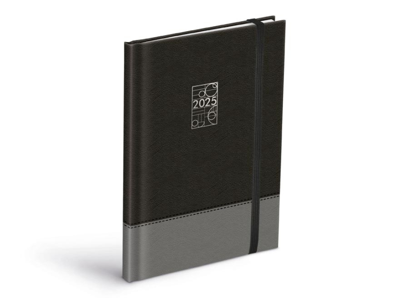 Týždenný diár pre rok 2025 vo formáte A5 s uzatváraním na gumičku v elegantnej kombinácii čiernej a šedej farby. Obálka je vyrobená z mäkčeného materiálu, ktorý je na dotyk príjemný a zároveň odolný. Tento diár je navrhnutý tak, aby bol vašim spoľahlivým pomocníkom pre organizáciu času a umožňuje vám mať všetky vaše týždenné plány a úlohy prehľadne usporiadané. DIÁR OBSAHUJE: - ročný prehľad roka - plánovací kalendár - štvrťročný plánovací kalendár - abecedný zoznam mien - štátne sviatky - medzinárodné sviatky - 7 strán pre poznámky - mapy - menné kalendárium - číslovanie týždňov - štátne sviatky a významné dni - východy a západy Slnka - fáza mesiaca - letný a zimný čas - znamenie - prehľad dvoch mesiacov Väzba: šitá V8 Rozsah: 144 strán Farba: čierna, šedá Rozmer: 140 × 205 mm Povrchy a spracovanie obálky: PU Kalendárium: československé týždenné Uvedená cena je za 1 ks.