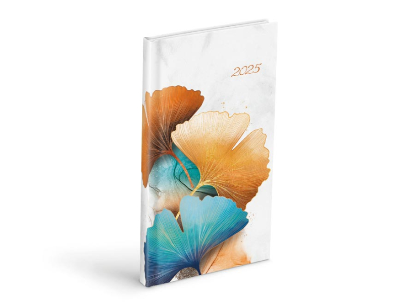 Týždenný diár na rok 2025 s nádherným motívom farebných listov Ginkgo biloby. Obálka je vyrobená z lesklého lamina, čo jej dodáva luxusný vzhľad a je príjemná na dotyk. S kompaktným a skladným rozmerom je tento diár ideálny na každodenné nosenie, či už vo vašej taške, kabelke alebo batohu. Napriek tomu ponúka dostatok miesta na všetky vaše poznámky. Je ideálnym pomocníkom na každodenné plánovanie a organizáciu. DIÁR OBSAHUJE: - ročný prehľad roka - plánovací kalendár - štvrťročný plánovací kalendár - abecedný zoznam mien - štátne sviatky - medzinárodné sviatky - 7 strán pre poznámky - mapy - menné kalendárium - číslovanie týždňov - štátne sviatky a významné dni - východy a západy Slnka - fáza mesiaca - letný a zimný čas - znamenie - prehľad dvoch mesiacov Väzba: šitá V8 Rozsah: 128 strán Rozmer: 90 × 170 mm Motív: listy Ginko biloby Kalendárium: československé týždenné Povrchy a spracovanie obálky: lesklé lamino Uvedená cena je za 1 ks.