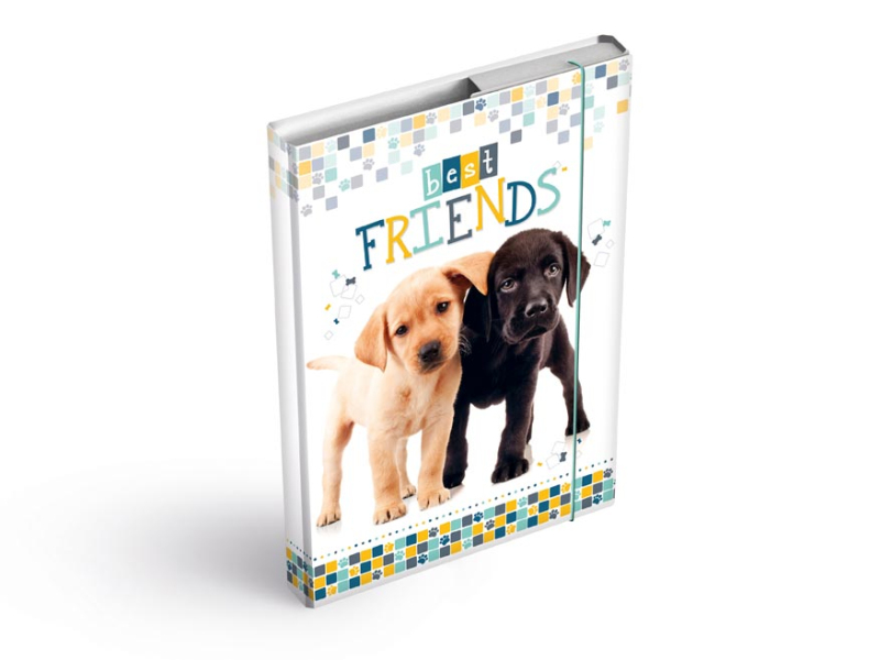 Školské dosky na zošity vo veľkosti A4 s motívom Psy. Nenahraditeľná súčasť výbavy každého školáka. Vďaka školským doskám budú všetky zošity a učebnice spolu a nepoškodené. Tieto dosky na zošity sú opatrené gumičkou, ktorá zabraňuje samovoľnému otvoreniu. Heft box je vyrobený z kvalitného lepenkového kartónu, potiahnutého laminátom. Preto sa môže veľmi ľahko udržiavať. Materiál: lepenkový kartón s laminátom Uvedená cena je za 1 ks.