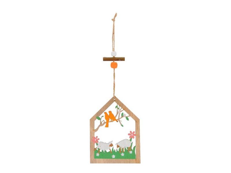 Veľkonočná dekorácia drevená, vyrezaný obrázok jarných motívov (ovečky, vtáci, kvetiny). Vyzdobte si byt veľkonočnými dekoráciami a privítajte tak sviatky jari. Túto dekoráciu môžete použiť na dekorovanie veľkonočných vencov či vetvičiek. Dekorácia má šnúrku na zavesenie. Veľkosť: 10 cm Dodávame vo vrecku so závesom. Uvedená cena je za 1 ks.