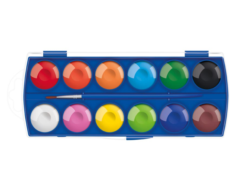Farby vodové. Namaľujte si s deťmi obrázok pomocou vodových farieb, ktoré vynikajú jasnou farebnosťou. Deti sa zabavia a navyše rozvinú motoriku ruky a svoju fantáziu. - vhodné pre školské a hobby použitie - vysoké krycie vlastnosti a kvalita - roztierateľné vodou - miešaním získate rôzne odtiene farieb, od hustých nepriehľadných až po priehľadné transparentné - priemer farby je 30mm - neobsahujú toxické látky Vodové farby obsahujú: - 12 ks (hnedá, čierna, svetlo modrá, tmavo modrá, tmavo zelená, svetlo zelená, žltá, svetlo oranžová, tmavo oranžová, ružová, červená, biela) - štetec VAROVANIE: Nevhodné pre deti do 3 rokov. Nebezpečenstvo prehltnutia malých častí. EN71-1,2,3,9 Vodové farby sú uložené v plastovej krabičke s priehľadným vekom. Uvedená cena je za 1 ks.