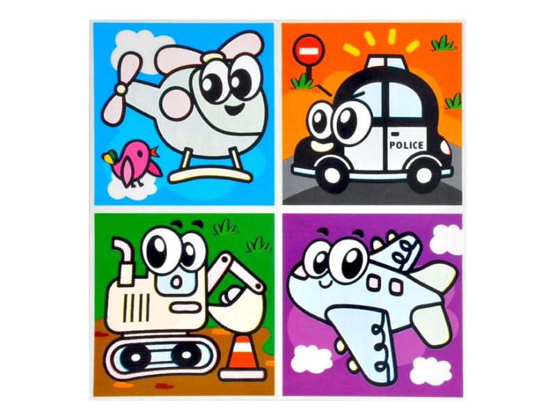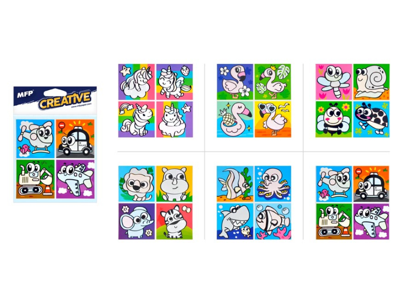 Fólia do kúpeľne, na ktorú sa môže maľovať vodou. Vyzdobte deťom kúpeľňu zábavnými obrázkami, ktoré prilepíte na kachličky, zrkadlo či na okná. Obrázky sú na fólii, ktorá antistaticky priľne na hladký povrch. Naviac, po navlhčení obrázkov vystupujú farby. Po zaschnutí sa farby opäť osvetlia. Obrázok sa môže opakovane odlepiť a prilepiť na iný povrch. Na obrázkoch nájdete zvieratá a dopravné prostriedky. Návod na použitie: Pretrite biele plochy vodou a obrázok sa začne sám zafarbovať. Po zaschnutí sa môžu obrázky opakovane zafarbiť. Upozornenie: Nevhodné pre deti do 3 rokov. Nebezpečenstvo udusenia. Môže obsahovať malé časti. Súprava obsahuje 4 obrázky. Uvedená cena je za 1 hárok.