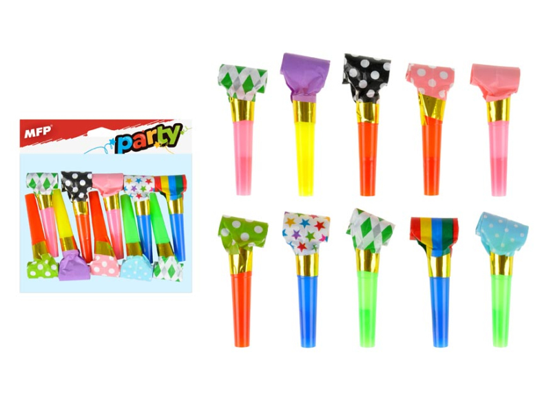 Papierová trúbka nesmie chýbať na žiadnej party. Papierová trúbka, súprava 10 ks v rôznych farbách a motívoch. Balené vo vrecúšku so závesom. Tento výrobok je zdravotne neškodný. Dĺžka trúbky: 23 cm VAROVANIE: Nevhodné pre deti do 3 rokov. Nebezpečenstvo vdýchnutia a zhltnutia malých častíc. Dodávame v sáčku so závesom. Uvedená cena je za 1 balenie.