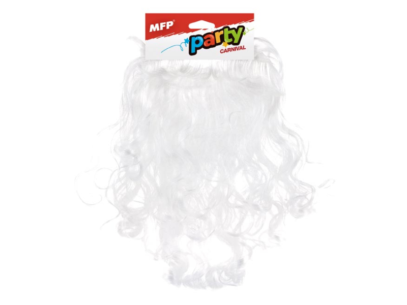 Biela mikulášska brada s otvorom na ústa. Táto mikulášska brada má na zadnej strane gumičku, vďaka ktorej veľmi dobre drží na hlave. Fúzy dokonale zamaskujú vašu tvár a keď pridáte mikulášsku čiapku, nikto vás nespozná. Dĺžka brady: 40 cm
