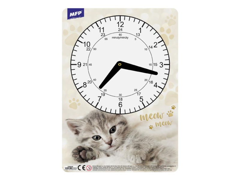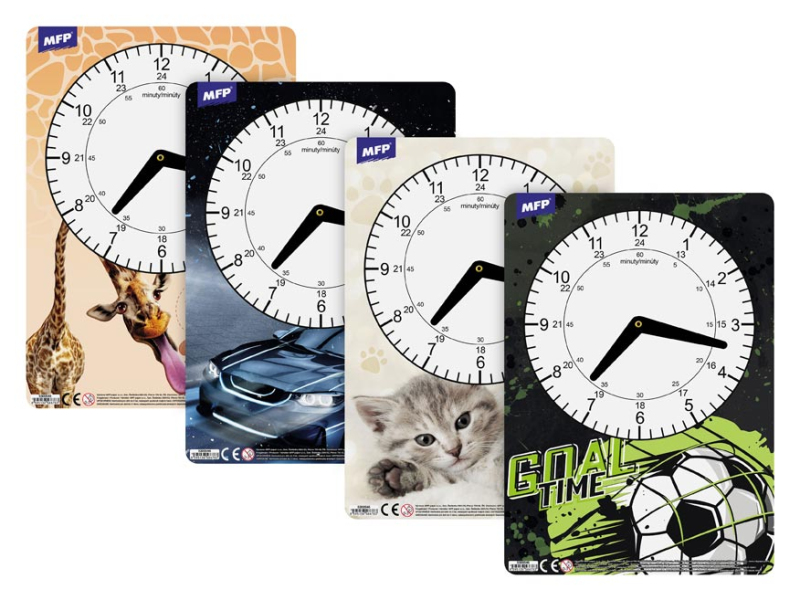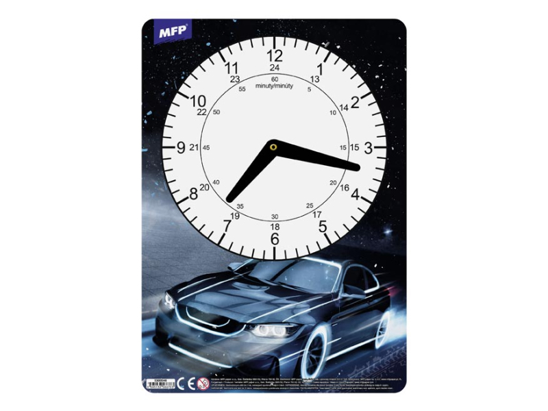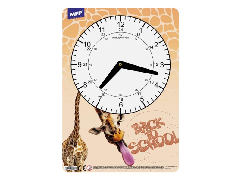 Detské, papierové hodiny s obrázkom. Didaktická pomôcka dobre využiteľná k vyučovaniu času pre deti predškolského veku alebo pre prvákov. Tieto cvičné hodiny nesmú chýbať vášmu dieťaťu pri nástupe do 1. ročníka základnej školy. MOTÍV: - jednorožec - smajlíci - závodné auto - mačka Rozmer: 210 x 297 mm UPOZORNENIE: Nevhodné pre deti do 3 rokov. Nebezpečenstvo vdýchnutia a prehltnutia malých častíc. Dodávame v rôznych motívoch po 4 ks podľa skladovej zásoby. Uvedená cena je za 1 ks.