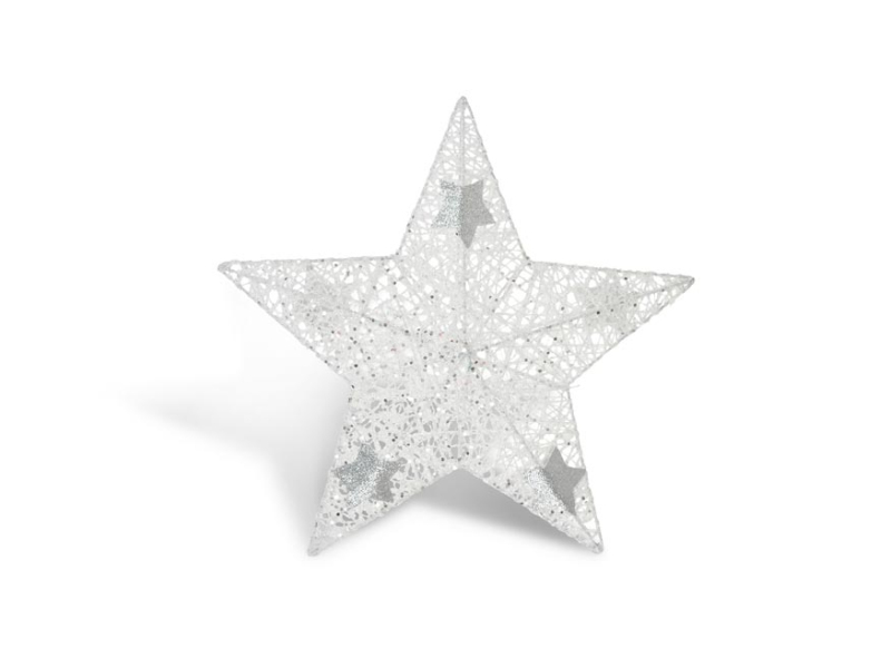 Vianočná dekorácia v tvare hviezdy v bielej farbe so striebornými hviezdičkami.. Vianočná dekorácia, ktorá skrášli interiér aj exteriér. Môžete ju použiť na ozdobenie vianočného stromčeka, okna alebo vchodových dverí. Túto hviezdu môžete ozdobiť aj podľa vlastnej fantázie. Uvedená cena je za 1 ks.