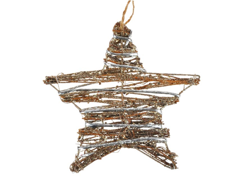 Vianočná dekorácia v tvare hviezdy z ratanu. Táto vianočná dekorácia je vybavená šnúrkou na zavesenie. Môžete ju použiť na ozdobenie vianočného stromčeka, zavesiť ju na dvere, okno a skrášliť si tak svoj domov. Veľkosť: 150 mm Cena je uvedená za 1 ks.