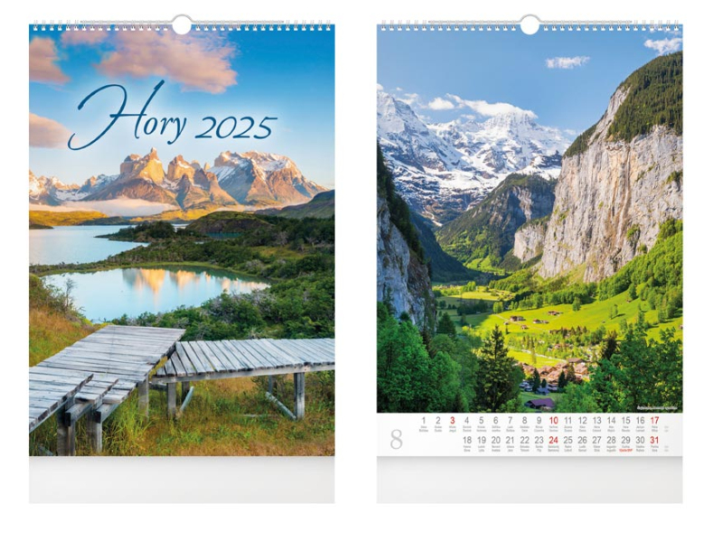 Nástenný kalendár na rok 2025 s názvom Hory. Kochajte sa fotkami hôr z celého sveta a inšpirujte sa, kam na dovolenku. Vhodný na organizovanie rôznych udalostí každodenného života. Možnosť dotlače firemného loga a textu na spodnú stranu kalendára. TYP KALENDÁRA: nástenný OBRÁZKY: hory V KALENDÁRI NÁJDETE: - štátne sviatky, významné dni CZ/SK - meniny CZ/SK - názov aktuálneho mesiaca - týždne Kalendárium: mesačné Rozsah kalendára: 14 listov Väzba: dvojitá špirála Kalendár je opatrený krúžkovou väzbou so závesom. Uvedená cena je za 1 ks.