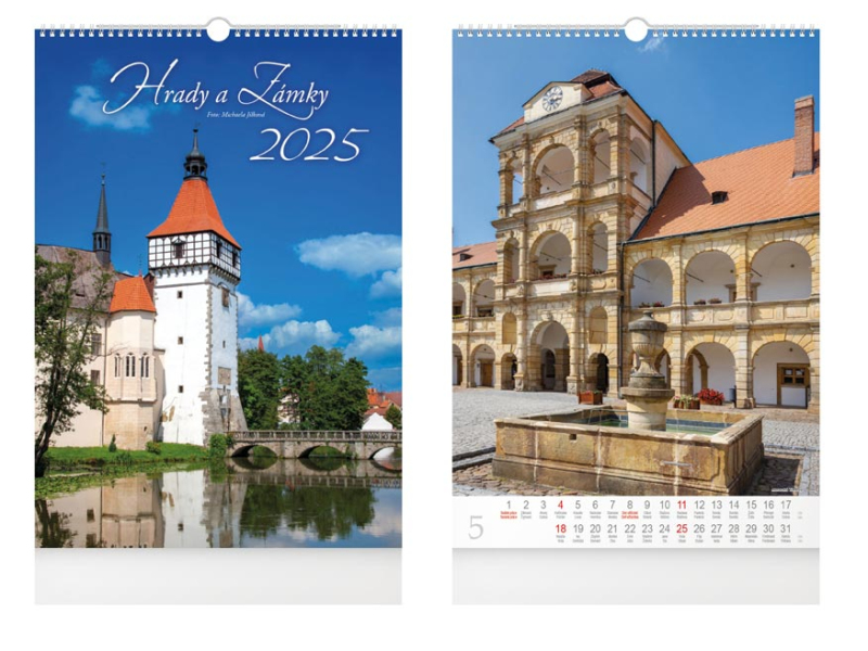 Nástěnný kalendář na rok 2025 s názvem Hrady a Zámky. Kochejte se fotkami hradů a zámků. Vhodný k organizování různých událostí každodenního života. Možnost dotisku firemního loga a textu na spodní stranu kalendáře. TYP KALENDÁŘE: nástěnný OBRÁZKY: hrady a zámky V KALENDÁŘI NAJDETE: - státní svátky, významné dny CZ/SK - jmeniny CZ/SK - název aktuálního měsíce - týdny Kalendárium: měsíční Rozsah kalendáře: 14 listů Vazba: dvojitá spirála Kalendář je opatřený kroužkovou vazbou se závěsem. Uvedená cena je za 1 ks.